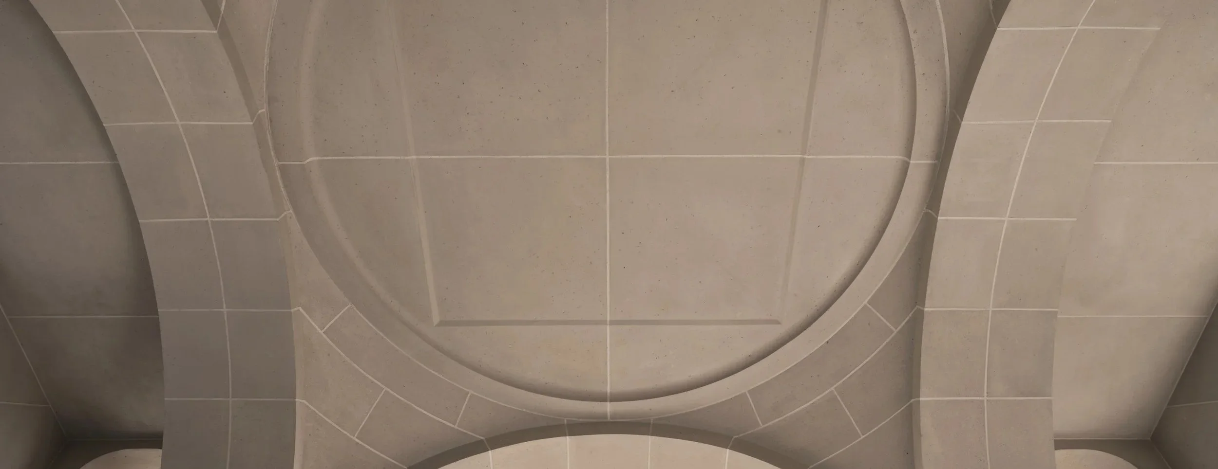 The architecture of the building is a geometrized classicism in the spirit of the 1930s. Masonry of large concrete blocks, massive metal grilles, and laconic geometry instead of ornament. The façade conveys a masculine strength, yet the detailing carries a sense of refinement and femininity.